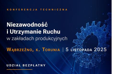 Już 5 listopada 2025 r. w Wąbrzeźnie, koło Torunia odbędzie się Konferencja Techniczna „Niezawodność i Utrzymanie Ruchu w zakładach produkcyjnych”.